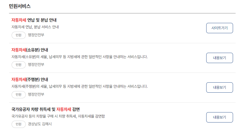 - [자동차세 납부내역 조회] 서비스 검색