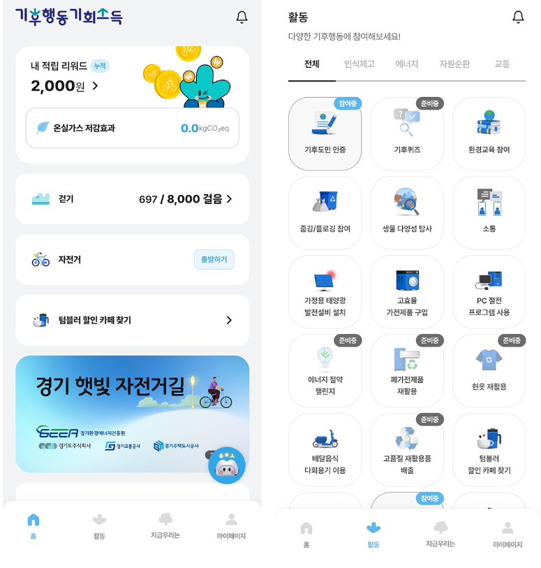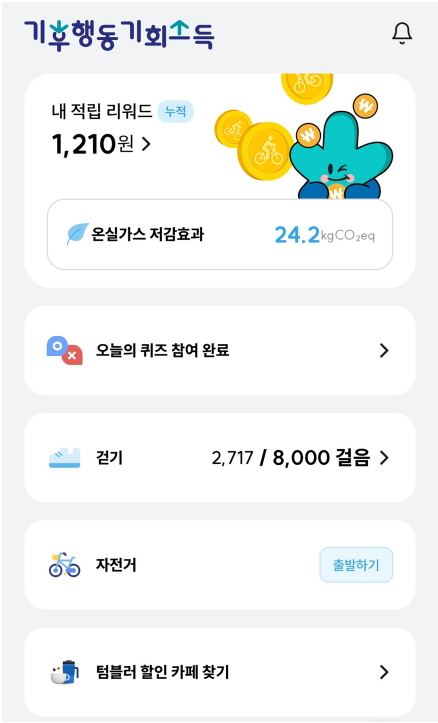 걷기, 텀블러 사용, 전기 절약처럼 아주 작은 실천도 정확히 기록되고 보상받는 구조를 통해,